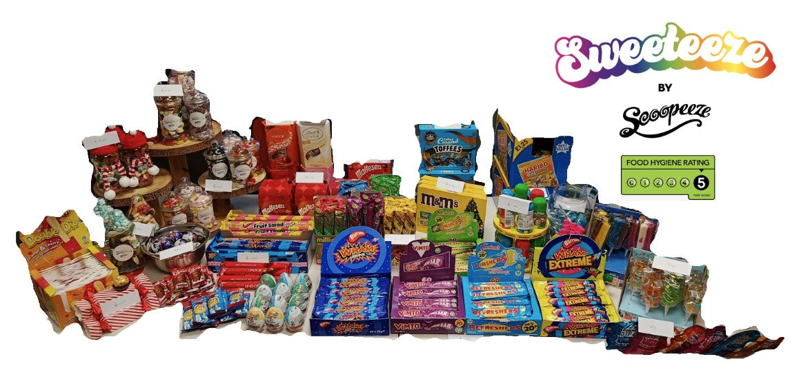 Welcome to Sweeteeze – your online sweet shop packed with old-school favourites, colourful pick & mix, and all the classics you remember. Based in Lancashire, we hand-pack every order fresh and deliver fast, with free local delivery across the area and nationwide shipping available too. From fizzy bottles and flying saucers to vegan, halal and sugar-free options, there’s something here for every sweet tooth – all at prices that won’t leave a sour taste.