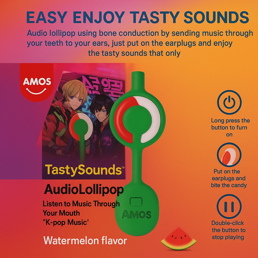 Amos Audio Lollipop uses bone conduction to send music through your teeth to your ears ..... enjoy tasty K-Pop sounds that only you can hear K-Pop ...